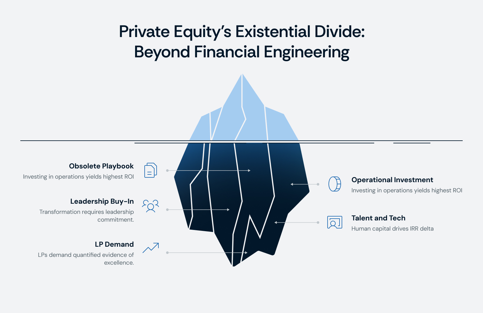 Private equity is undergoing its most consequential shift in 50 years. Firms with sophisticated operating capabilities are outperforming peers by 2–3% IRR—compounding into hundreds of millions in additional fund value. Meanwhile, firms still clinging to financial engineering are facing LP defections, failed fundraises, and existential risk.